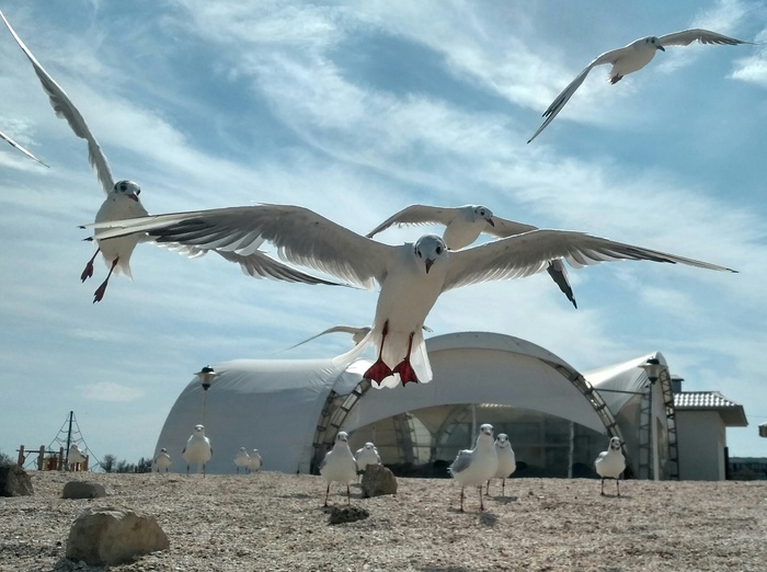 Промт: Anime-style coastal scene with seagulls gathered along a long concrete breakwater. Waves crash rhythmically against the structure, sending light spray into the air. The birds perch, preen, and occasionally lift into flight, their white feathers catching soft daylight. The sea stretches outward in layered blues and greens, with foam tracing the water’s movement. Distant clouds drift slowly across the sky, and salty wind ripples the surface, creating a calm yet lively atmosphere filled with motion, soundless cries, and seaside serenity.