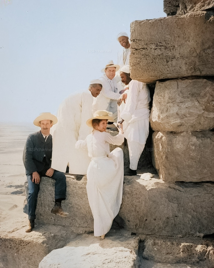 Туристы на пирамидах Гизы. Египет, начало ХХ века.