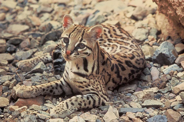 По окрасу оцелот напоминает ягуара или леопарда, но значительно уступает им в размерах. От головы до кончика хвоста его длина составляет от 100 до 140 см, а масса – от 10 до 16 кг. Расположение пятен на яркой шубке оцелота уникально у каждой конкретной особи. Вероятность встретить двух оцелотов с одинаковыми пятнами даже ниже, чем вероятность найти двух людей с одинаковыми отпечатками пальцев. Ну, хотя бы потому, что оцелотов на планете заметно меньше, чем людей :)