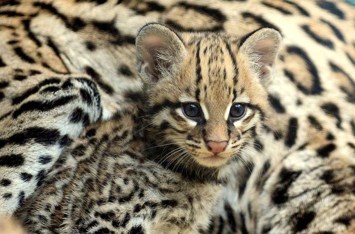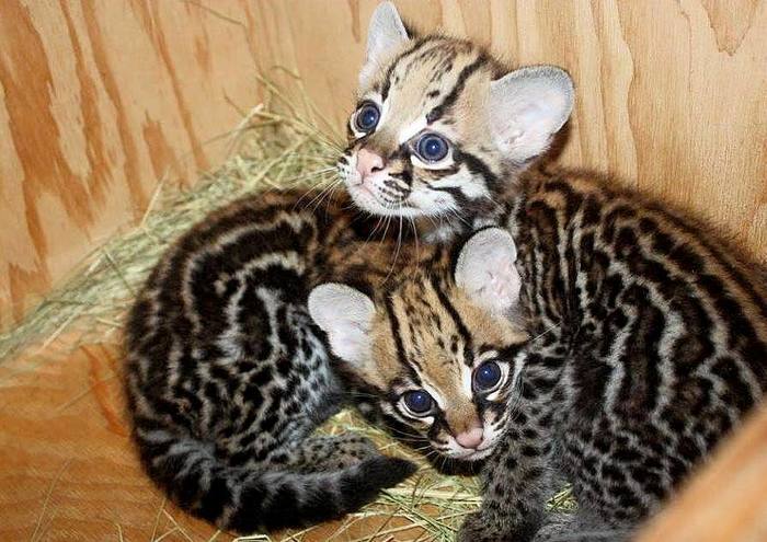 Своим внешним видом американские оцелоты очень сильно напоминают средних размеров длиннохвостую кошку или некрупного детёныша леопарда.