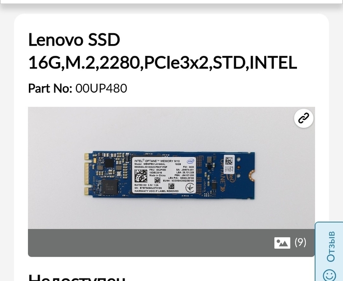 В слоте для ssd стоит диск на 16 Гб, как я понимаю для ускорения работы Вот такой: