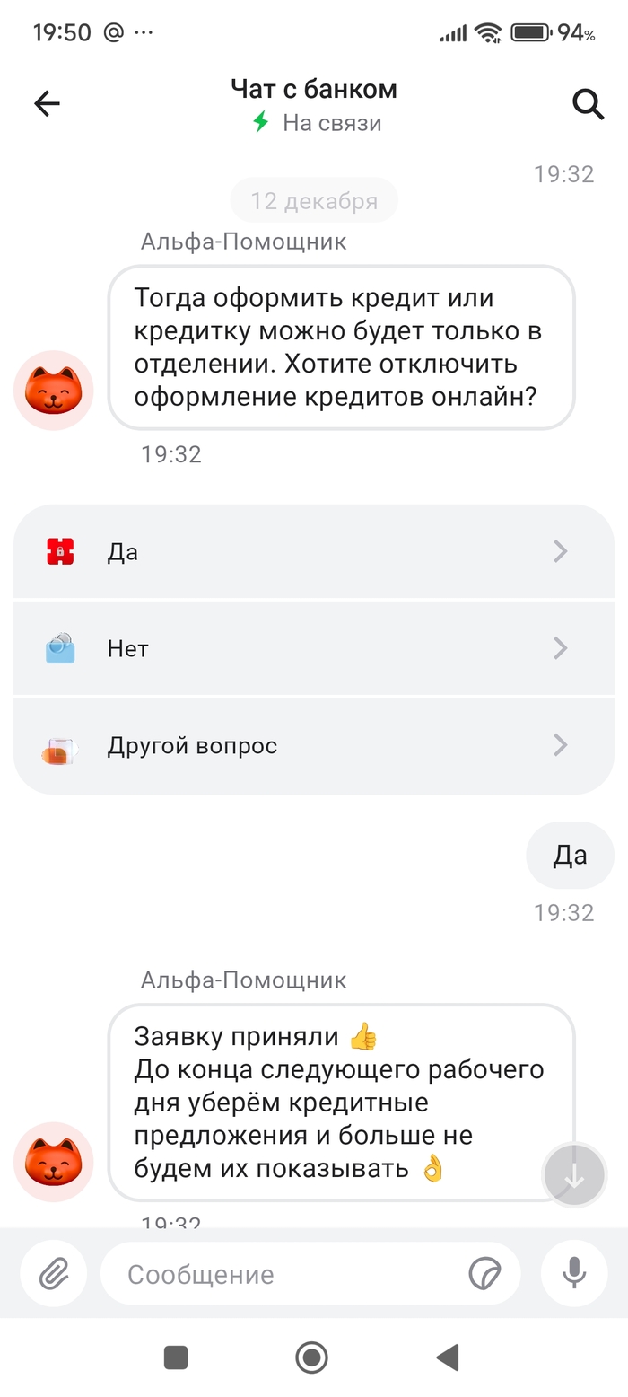 Альфа банк, вы реально задолбали своими рекламными предложениями! 12 декабря просил отключить всю рекламу и предложения по кредитам. Сегодня восемнадцатое! — Какого хера?!