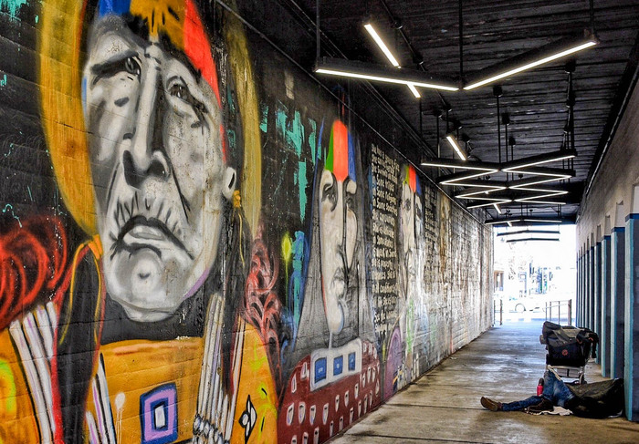 Гуляю пару часов и еду в Оклахома-Сити. Здесь уже веселее. Какие-то парки, несколько старых кварталов из красного кирпича, канал с уточками, стрит-арт и трамваи, хотя людей на улицах по-прежнему нет. Приятный город на один день.