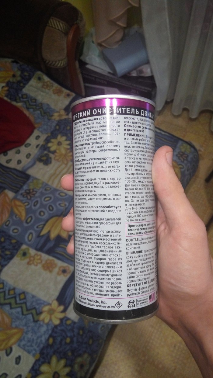 Всем доброго вечера!Не так давно занимался починкой машины( ну как починкой:чистил кондиционер,салон,масло менял и т.п.).И при очередной покупке масла решил с дуру прикупить себе очиститель двигателя от кампании HI-Gear.По описанию просто чистит двигатель от нагара,смазывает,улучшает его(делает из вашего автомобиля ламборгини),ну как обычно.Мне важна лишь чистка.Но побродив немного по интернету, наткнулся на разные отзывы людей.Одни пишут,что хорошее средство и правда помогает,но другие же пишут ,что от него только хуже становится и это все равно ,что залить просто воды в двигатель - эффект тот же.Может подскажет мне ,неосознанному,стоить ли им пользоваться или да ну его нафиг?Может кто уже проверял или есть знакомые?Фото прилагаю. Коммент для минусов внутри.Заранее спасибо!