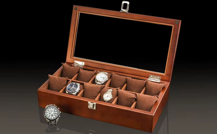 Стильная и функциональная шкатулка для хранения часов, выполненная из натурального дерева. Внутри предусмотрен мягкий чехол, защищающий аксессуары от царапин и повреждений. Закрывается на удобную защелку, что делает ее надежной для хранения вещей.