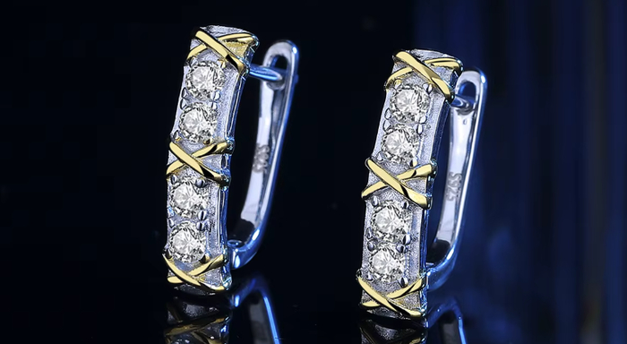Изящные серьги, украшенные сияющим муассанитом, выглядят так же дорого, как и бриллианты. Камни имеют высокий блеск и идеально огранены, создавая эффектный перелив. Оправы выполнены из гипоаллергенного металла, обеспечивающего комфорт при носке.