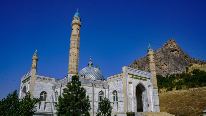 Мечеть Сулейман-Тоо у подножья одноименной горы.У подножья Сулейман-Тоо стоит мечеть, где вывеска сообщает о тех странах, которые профинансировали ее постройку.