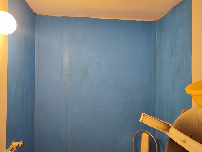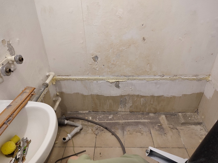 Посему были куплены ПВХ панели, гидроизоляция, и всякого по мелочи. Жену с детьми отправил в эвакуацию на фазенду, а сам со товарищи приступил к работам.