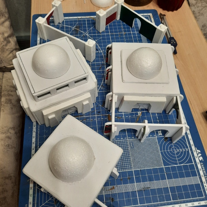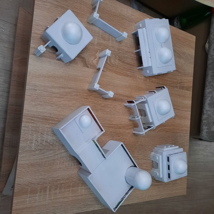 В качестве материала выбрал ПВХ пластик 3 мм. Заказал нарезку на станке, после чего с братом склеили фигуры