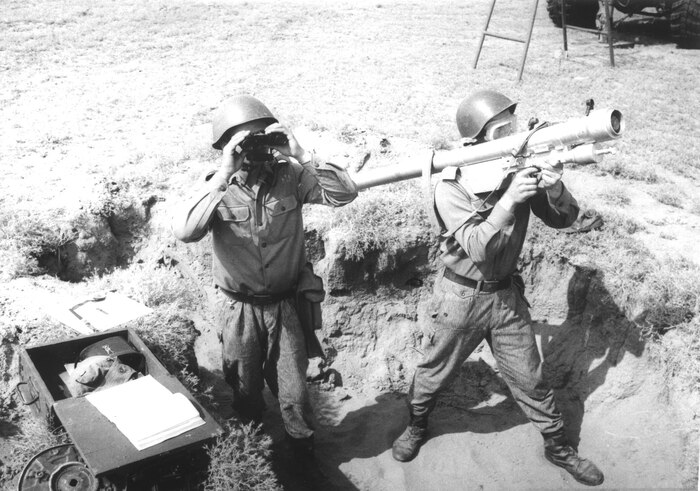 Пуск ракеты производится с плеча, из положения стоя или с колена.