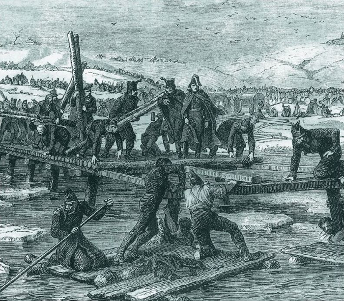 В истории остался подвиг французских понтонеров армии Наполеона, построивших мосты через Березину, стоя по плечи в холодной ноябрьской воде. Странновато получается, что понтонеры строят мост, но так уж сложилась история. Понтоны были брошены при отступлении ранее, поэтому остались только понтонеры. Их и пристроили экстренно наводить переправу, с чем они справились буквально ценой собственной жизни.