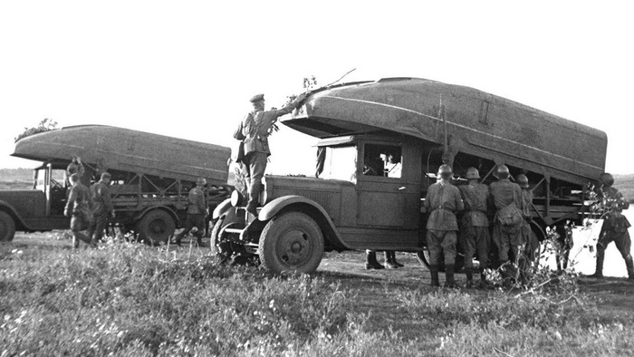 Одним из важнейших этапов в развитии средств переправы, как и в целом по армии, была моторизация. Ведь чтобы следовать за наступающей моторизованной армией, нужно обладать высокими маршевыми возможностями. Иначе вышедшие к рубежу реки передовые подразделения будут вынуждены бесконечно ждать подтягивания переправочных средств, а маневр этими средствами станет чем-то на грани фантастики. Многие забывают о банальнейшей вещи – чтобы навести понтонный мост, нужно, чтобы он каким-то образом оказался в нужном месте. А для этого нужно подтянуть понтонный парк – подразделение из кучи машин, обычно колесных. С одной стороны, установка их на грузовые автомобили существенно повысила скорость по сухим дорогам, но и только. Если погода портилась, то можно было очень долго ждать свой мост. В общем, новые требования и новые проблемы. С другой стороны, появилось еще одно важное новшество – для моторизации переправы на воде применялись буксирные катера. Помимо металлических понтонов использовались также наплавные мосты на резиновых поплавках или даже подобии резиновых лодок.