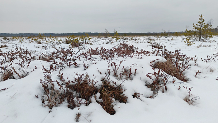 Сходили с сыном проверить глухариный ток и зашли на верховое клюквенное болото. Оттаяли первые кочки и появилась клюква. Её очень много. Думаю, что через пару недель снег сойдёт и можно будет смело идти на болота собирать эту крайне полезную ягоду.
