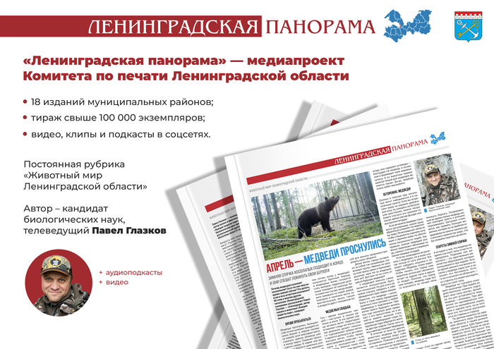 На выставке-форуме презентовал и свою новую рубрику "Животный мир Ленинградской области" в медиапроекте Комитета по печати Ленинградской области - "Ленинградская панорама". Теперь в Ленинградской панораме в формате статей, видео с животными и аудио подкастов буду рассказывать про зверей и птиц нашего региона.