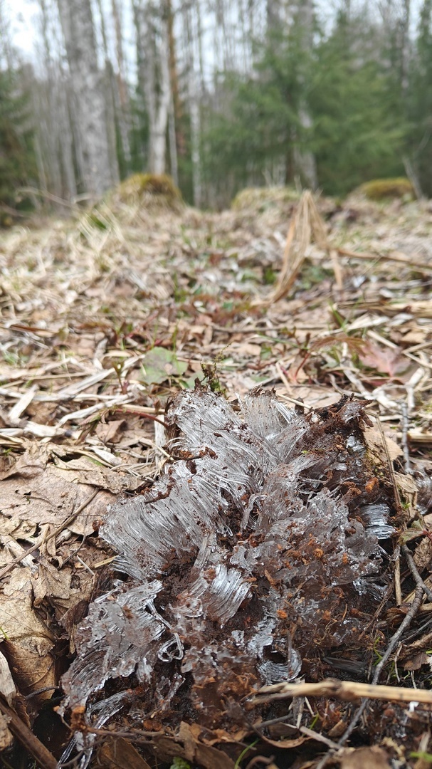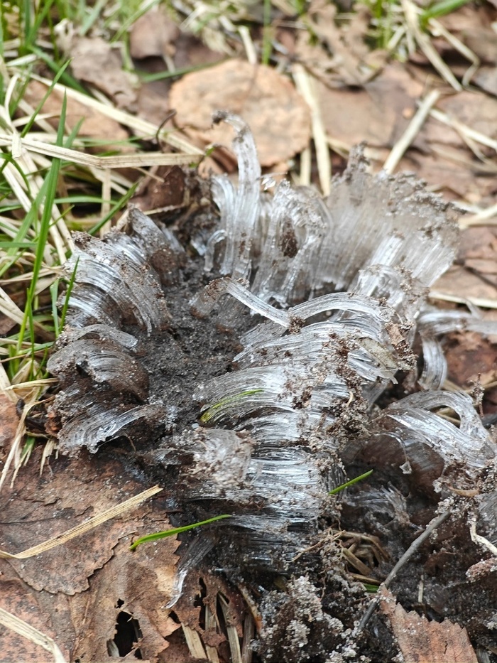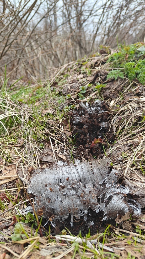С наступлением заморозков в лесу происходят чудеса! Вода, испаряясь из-под земли, замерзает в причудливых формах. Создается ощущение, что ледяные цветы действительно выросли из под земли!!!