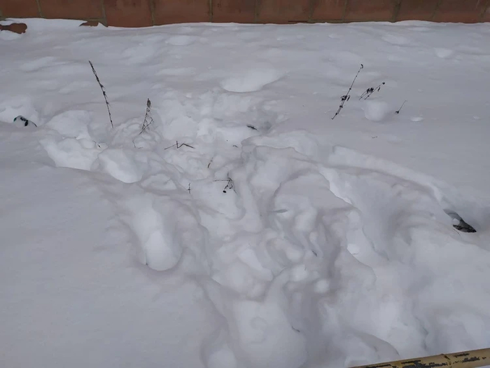 В нескольких сантиметрах от ямки, куда «приземлилась» голова мальчика, из снега выглядывает стеклянная бутылка.