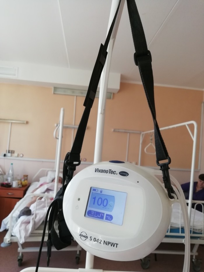А через два дня вакуум нашли :) Им оказался прибор, который высасывает из раны экссудат по трубочке. В спину, прям в самое нихачу, засовывается здоровенная (она реально огромная, с мою ладонь!) губка, из которой торчат два провода, которые ведут в аппарат, внешне похожий на радио (когда я сбегала погулять на 10 минут в прибольничный парк, у меня так прямо и спрашивали "а это что у вас, радио?").