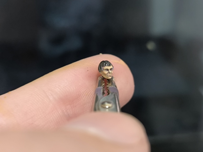 Сама сестра красилась не особо интересно, единственно, уже начав красить голову я решил, что ну совсем она мне не нравится и заменил ее на голову с капюшоном