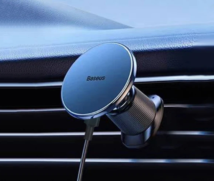 Автомобильный держатель сочетает функцию крепления смартфона и беспроводной зарядки. Магнитная система помогает быстро зафиксировать устройство.