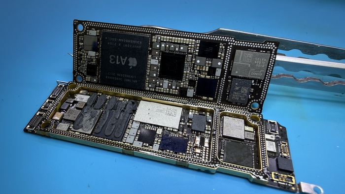 После проведения диагностики стало понятно, что проблема не в самой плате, а в другом распространённом дефекте этой модели - отвале процессора. В последнее время подобная проблема на iPhone 11 встречается довольно часто. В таких случаях выполняется реболлинг процессора.