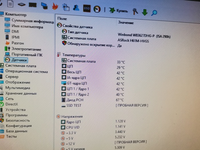 Температура процессора в стресс-тесте 42 градуса, система охлаждения работает.