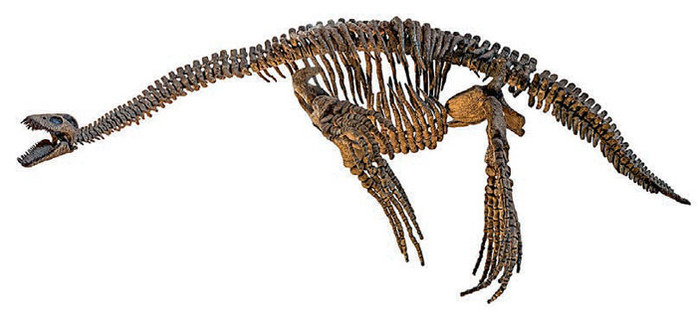 Скелет плезиозавра. Эти пресмыкающиеся жили в морях и океанах с триасового по меловой период. Некоторые представители отряда достигали 20 м в длину