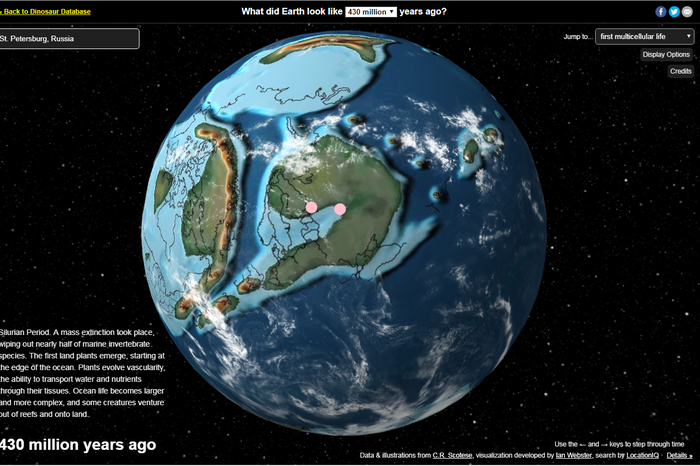 Расположение Москвы и Петербурга 430 миллионов лет назад.