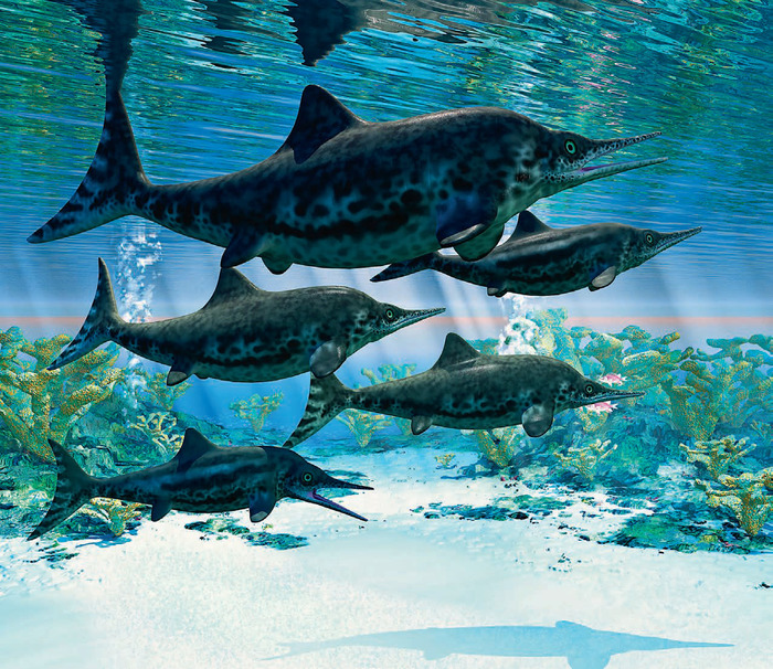 Ихтиозавр Stenopterygius. Эти морские пресмыкающиеся начали вымирать примерно 100 млн лет назад. На смену им пришли плезиозавры