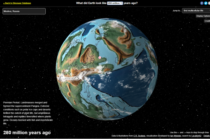 Мы привыкли, что континенты имеют чёткие очертания и находятся на своих местах. Пока мы летим из Москвы в Сочи, Чёрное море не перельётся в другую низину, а Крым так и останется полуостровом. Но если по завету Дока Брауна из «Назад в будущее» думать в четырёх измерениях, то выяснится: рельеф менялся настолько радикально, что, посмотрев на глобусы разных геологических эпох, мы вряд ли узнали бы родную планету.