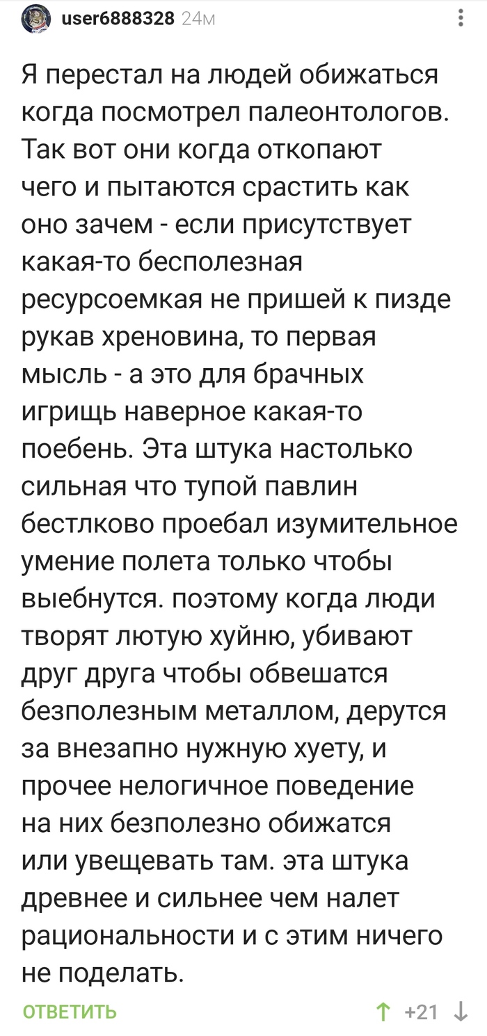 Тут результат моего персонального творчества. Первый мой просветительский пост, прасти хасподь, было вот это.... Парк юрского периода vs Реальность. 7 лет назад я тупо пересказал КИНОГРЕХИ!!! Парка юрского периода.) Отклик был хороший и мне стало интересно этим заниматься. Так я и влился... в струю, кхе. Как итог, 700 постов, 50+% моё, участие в крутых проектах, личное общение со всякими крутыми спецами. Только до FAQ по истории Земли, самой ценной моей работы, я на щитпостил типа умных постов будь здоров.) Но качество со временем выросло!