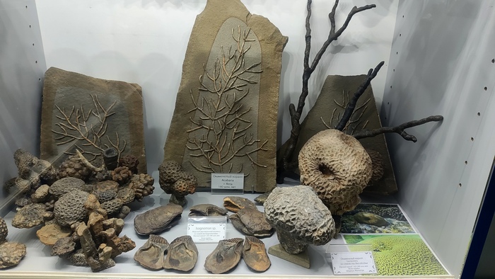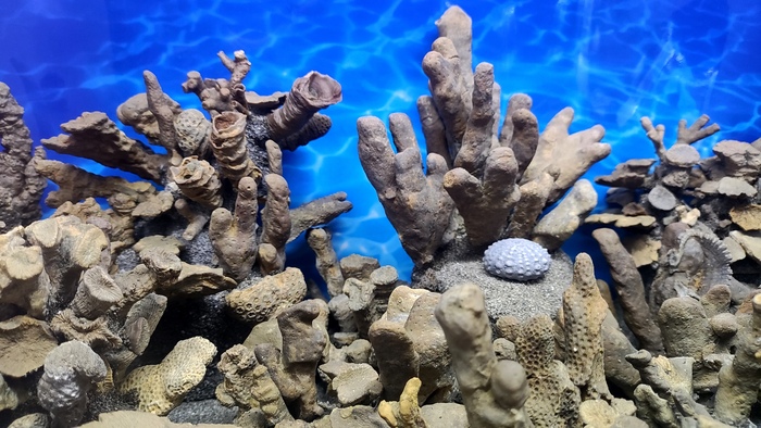 Фото: реконструкции эдикарской биоты в различных музеях и институтах (Diorama of Ediacaran sealife displayed at the Smithsonian Institution; Diorama of the Ediacaran biota at the Field Museum in Chicago).