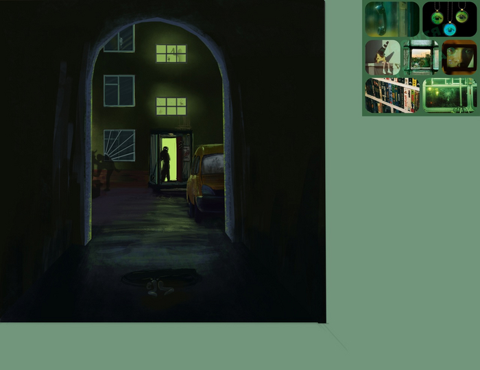 Обычно дворы наши желтые и на солнце они дают дурацкие желтые тени. И не знаю что с этим делать, разве что голубое отрезать.