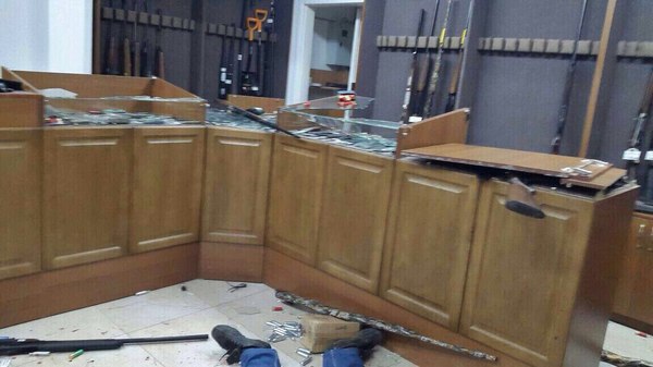 Оружейный магазин "Паллада" после ограбления в Актобе