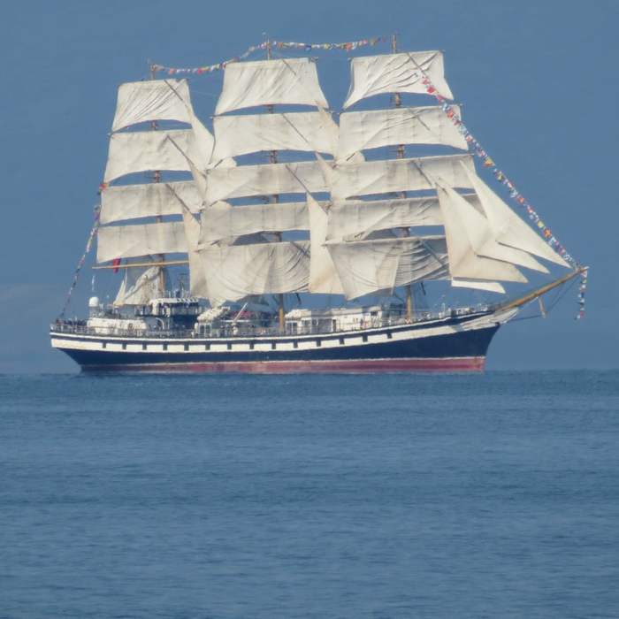 Вот так "Паллада" выглядит в море, при парусах - во всей своей красоте (фото из интернета). Она действительно является гордостью и одним из символов Владивостока. Так как я выросла в другом городе, у меня не было возможности посетить парусник во время школьной экскурсии или на день открытых дверей. 29 апреля открылась регистрация на площадки, и 100 мест на "Палладе" закончились в тот же день.
