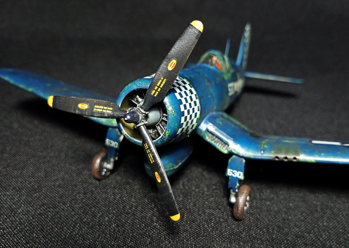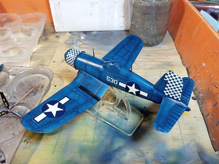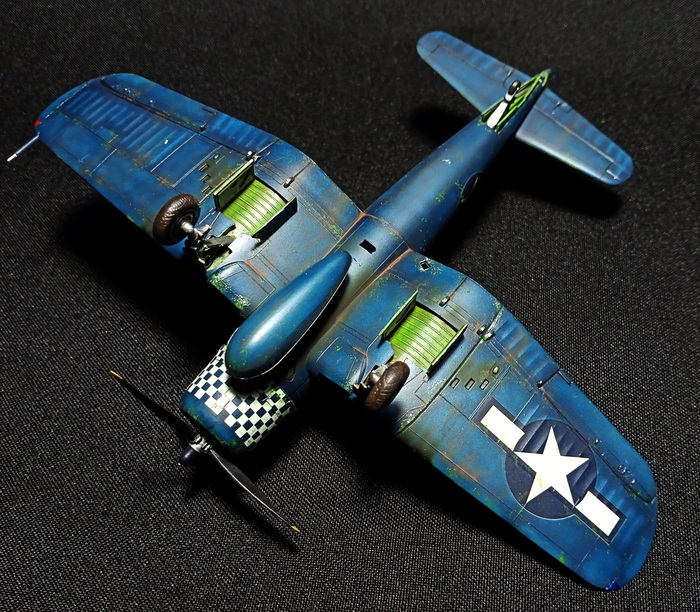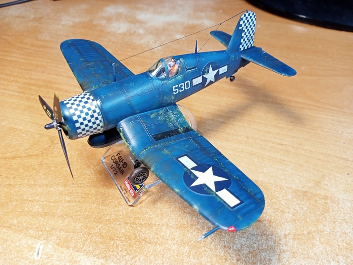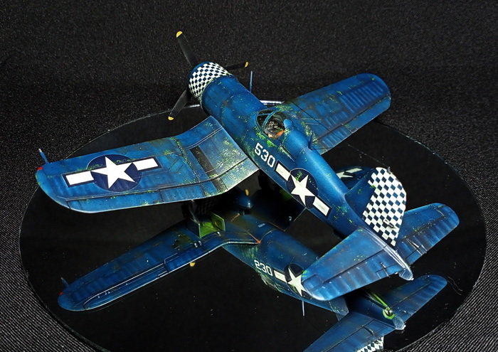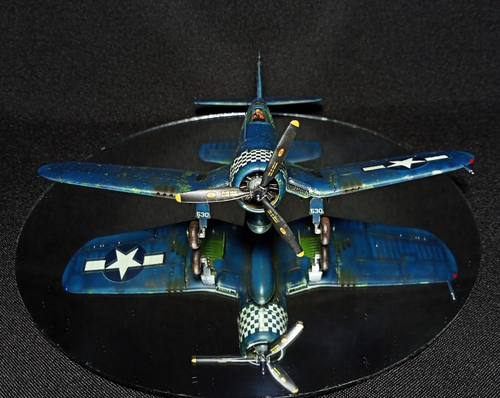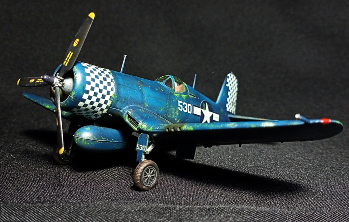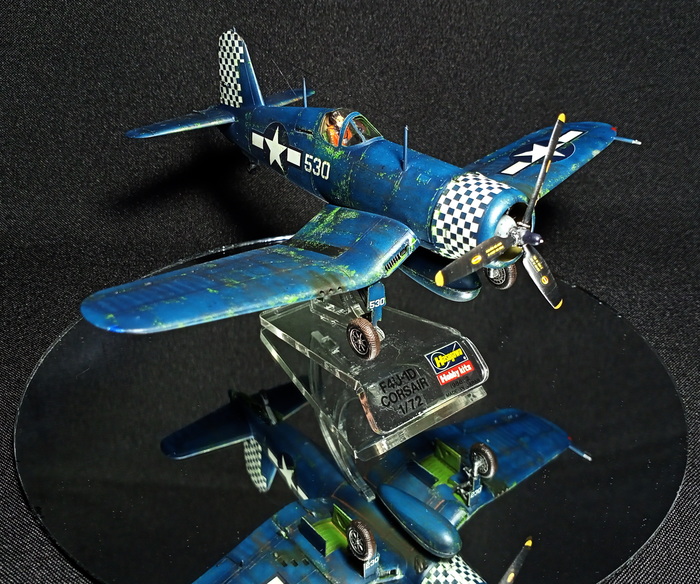 Представлена модель Chance-Vought F4U-1D Corsair в варианте истребителя из состава эскадрильи WMF-312 Checkerboards («Шахматные доски») Корпуса Морской Пехоты США, авианосец Hollandia. Пилот — лейтенант первого класса Merritt O'Chance (Мэррит О'Чэнс), Окинава, май 1945 года. Модель фирмы Hasegawa, масштаб 1/72.