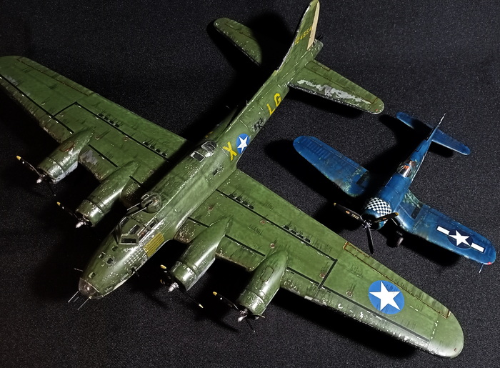 Chance-Vought F4U-1D Corsair и великан Boeing B-17F Flying Fortress