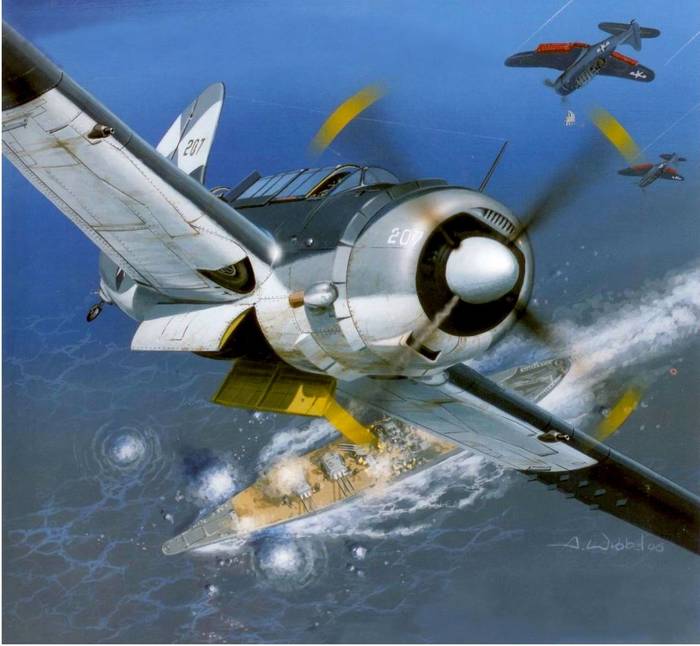 SB2C-4 «Хеллдайвер» в атаке на японский линкор «Ямато», 7 апреля 1945 г.