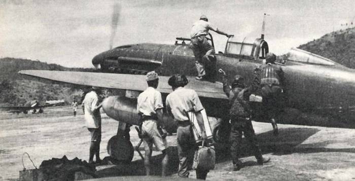 Скоростной палубный разведчик «Йокосука» D4Y1-С «Сусей» готовится к разведывательному полёту, 1943г.