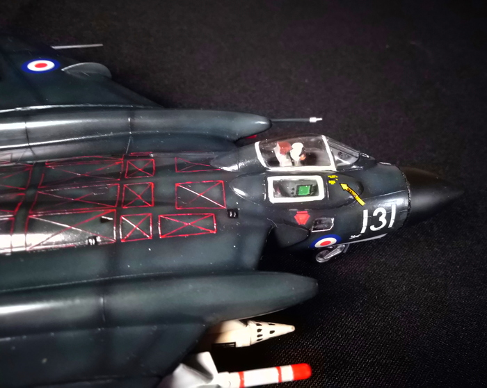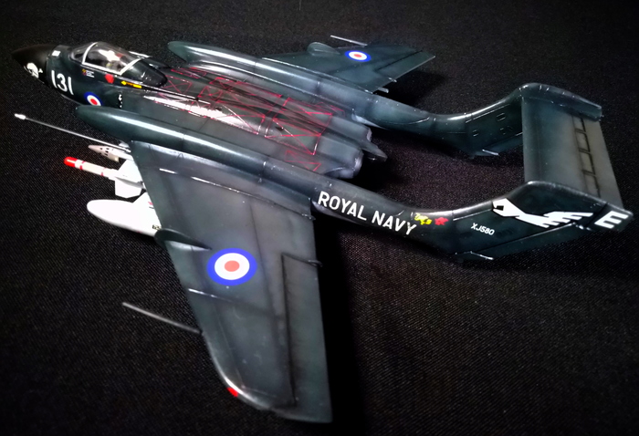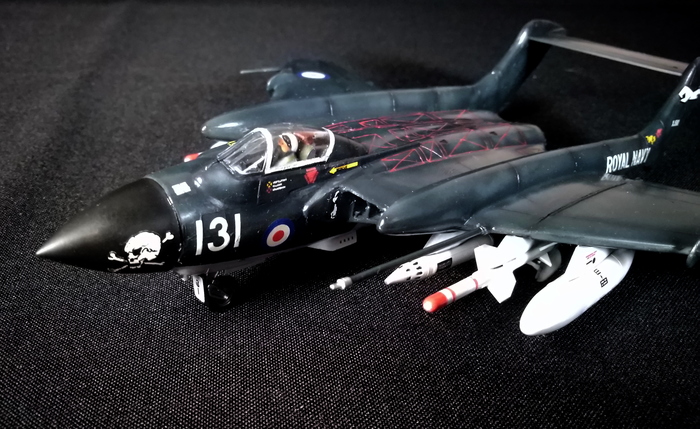 Представлена модель De Havilland DH.110 Sea Vixen FAW.2 из состава Simons Circus Display Team (пилотажной группы «Цирк Саймона»), авиабаза Йеовилтон (RNAS Yeovilton), 1968 год. Модель британской фирмы FROG 1976 года в перепаковке «Eastern Express», 1/72.