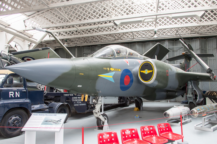 В Royal Air Force морским Buccaneer пришлось послужить еще долго в составе 12, 15, 16, 208 и 216 эскадрилий и 237 OCU (Operational Conversion Unit - часть переучивания и боевой подготовки). Здесь вместе с самолетами, изначально поступавшими в ВВС, они мирно несли свою службу до 1990 года.К этому времени поголовье Buccaneer серьезно уменьшилось из-за старения элементов конструкции крыла, которое даже вызвало несколько катастроф, и вследствие замены на Tornado. Уцелевшие самолеты были сконцентрированы в 12 и 208 эскадрильях и 237 OCU, где специализировались на противокорабельных операциях, а также на задачах лазерной подсветки целей для управляемых авиабомб.К этому времени Buccaneer пришли отличными от того, какими они попали в ВВС. Внешне они отличались вздутой створкой бомбоотсека, которая по совместительству стала 2046-литровым топливным баком. Вооружение пополнилось противокорабельными ракетами Sea Eagle, сменившими Martel, и корректируемыми бомбами Paveway, для применения которых на самолет на левый внутренний пилон подвешивался контейнер AN/AVQ-23E Pavespike. Вместо Red Beard они могли нести две новых 600-фунтовых ядерных бомбы WE-177A, а место блоков неуправляемых ракет SNEB заняли кассетные бомбы Hunting BL-775. Было обновлено оборудование радиоэлектронной борьбы, под самолет могли подвешиваться контейнеры AN/ALQ-101(V)-10, а для самообороны они получили ракеты воздух-воздух AIM-9 Sidewinder.