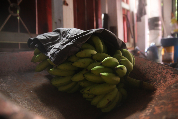 Орландо примчал с выходных в городе, наругался на нас с Марией, что не срезаем бананы — пропадут. Обрезали всю гроздь, заполнили нижнюю полку в холодильнике. И тут Орландо объявил новую задачу — экстренно съесть их за три дня, иначе они погниют на нашей жаре и влажности. Действительно, уже на второй день шкурки у половины бананов стали склизкими и коричневыми, несмотря на прохладу холодильника.