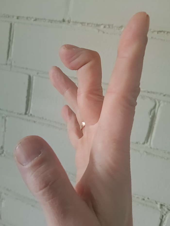 Никаких травм и аномалий нет. Но с детства могу сгибать верхнюю фалангу на мизинце и среднем пальце под прямым углом отдельно от других пальцев.