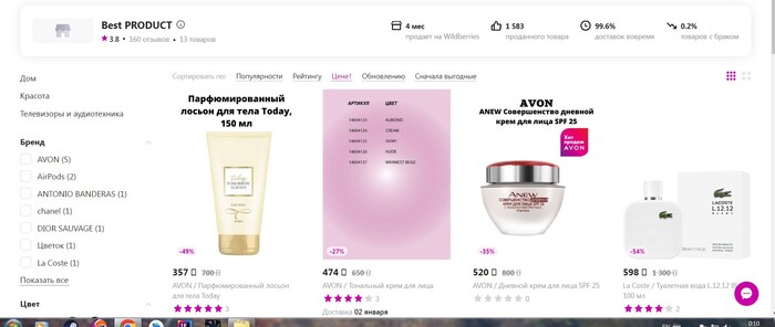 Как бы в "лучшие" времена "Dior" начинался с 5000 руб. А тут такой "подарок" от WB. Хотя даже по представленным ценам виден разброс...