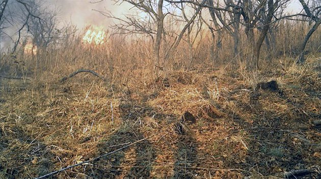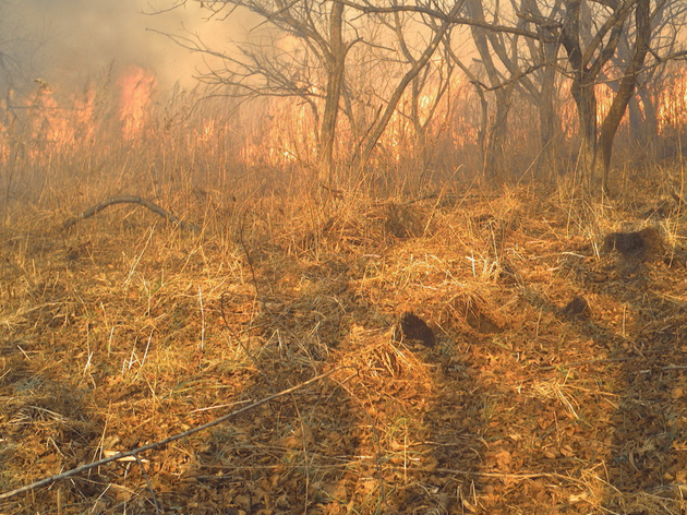 Ежегодные палы сухой травы угрожают редким зверям даже в заповедном защищенном месте.