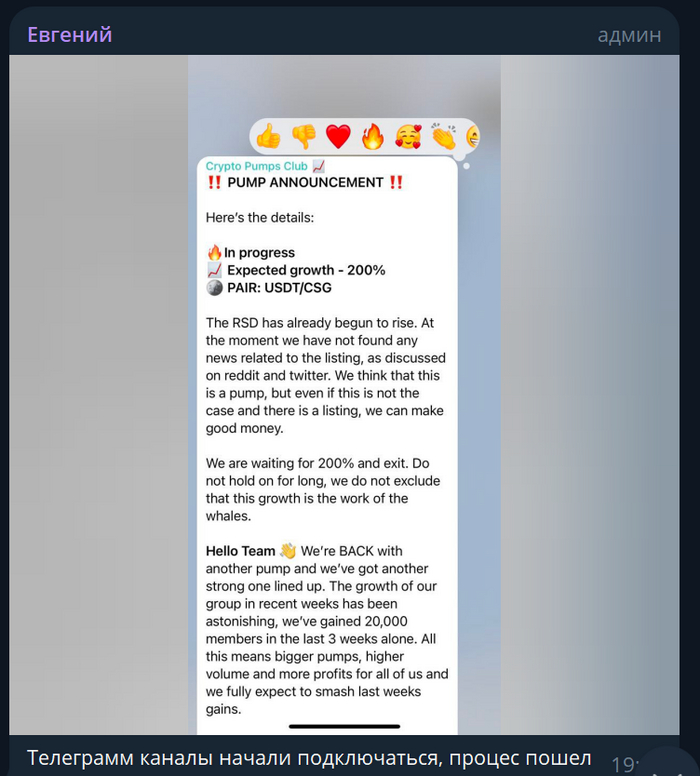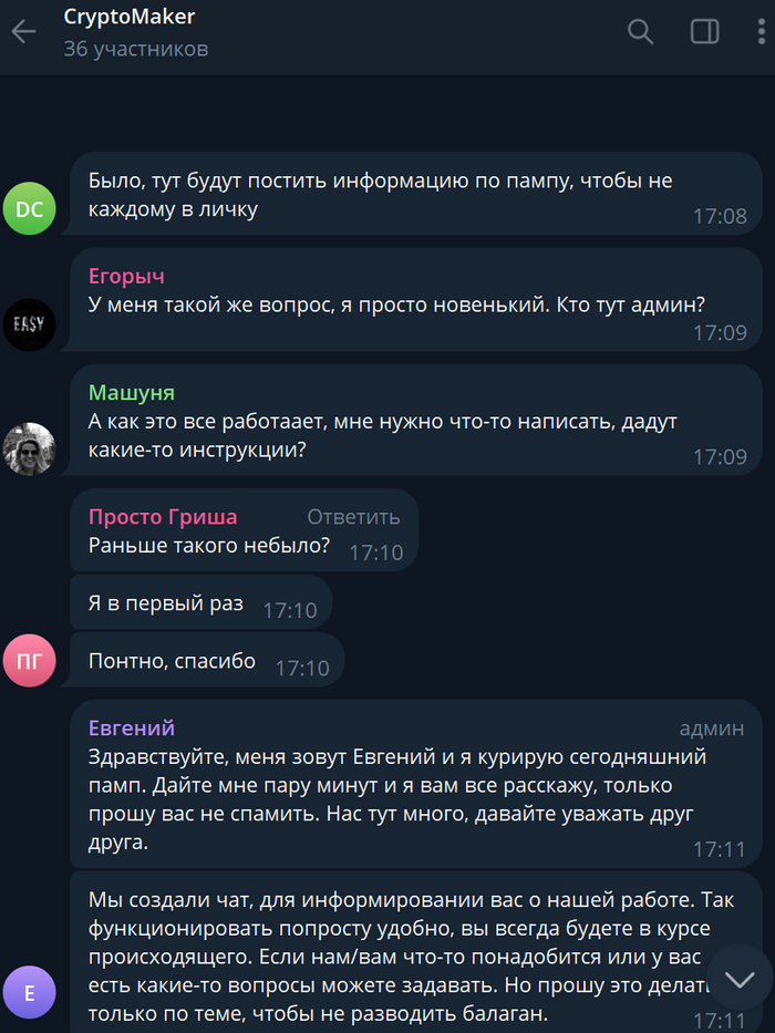 После этого общение в группе заканчивается, ведь памп прошел успешно и утром вам заплатят ваши обещанные миллионы.