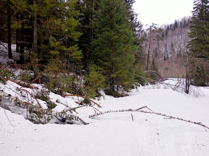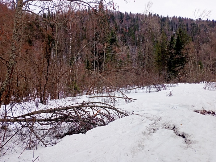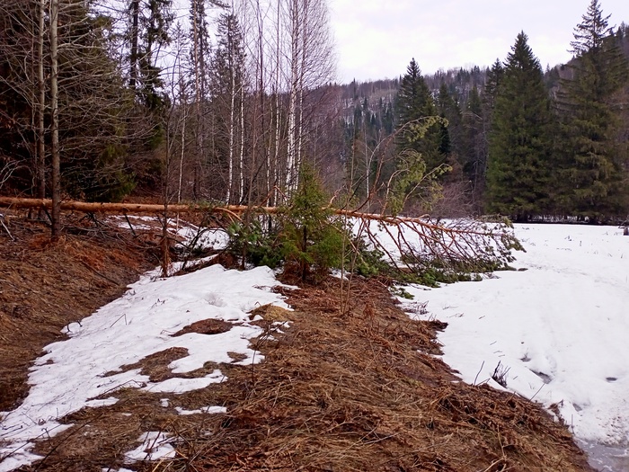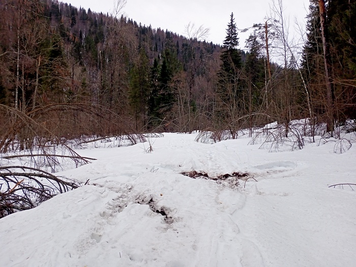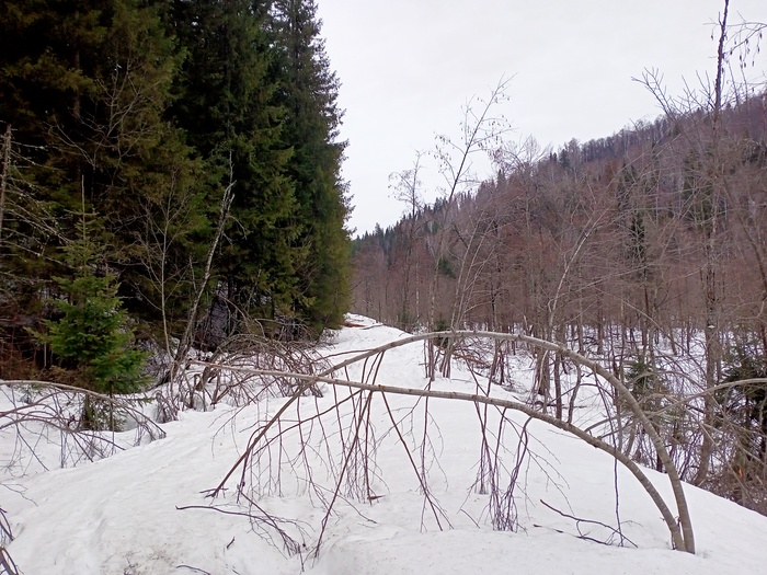 Первого мая прошел до десятого километра. Ситуация следующая: кто то заехал со стороны Красивой Поляны, и до Тамака расчистил все завалы. Объем работы провели колоссальный. Судя по следам, это были вездеходы. Но расчистили ровно до Тамака, между Тамаком и Устьем оставили.