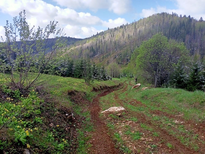 Мы со старым знакомым Лехой, заехали со стороны Красивой Поляны. Дорога накатана уже как магистраль. Я на своей проехал метров 500 от Красивой и припарковал в кустах. Дальше пошли пешком. Хотя до Тюбы я бы спокойно доехал и на своей пузотерке.