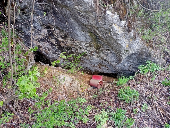 А вот и сам родник Тюба. Мда... Состояние его конечно удручающее. Я его помню когда был мост высокий, крепкий, по которому ездили тепловозы и тяжёлые вагоны с лесом. А сейчас бульдозером все срезали, и родник завалили, что бы можно было проехать.
