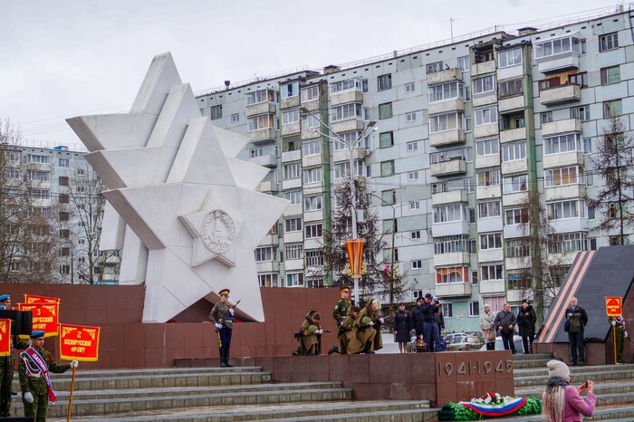 Гости Полярных Зорь любят фотографироваться на фоне скульптурной композиции «Умка и северное сияние» в Детском сквере. Её установили в 2013 году к 40-летию пуска первого энергоблока Кольской АЭС.