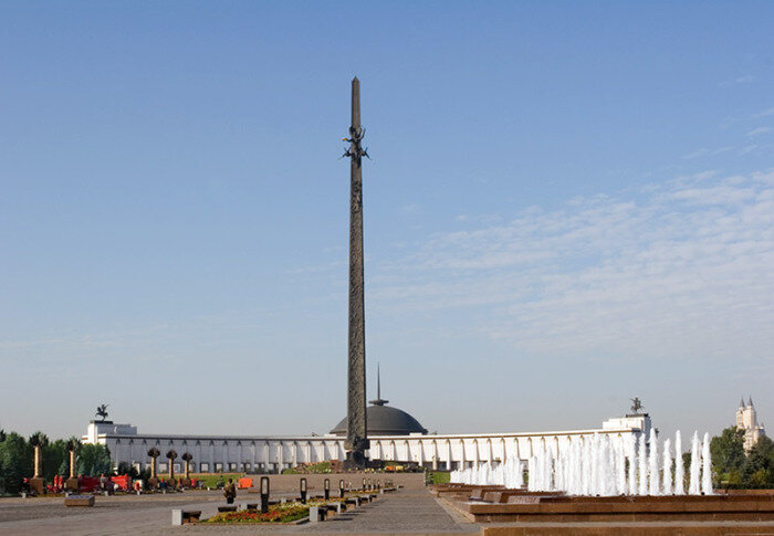 Эта стела была возведена в рамках мемориального комплекса на Поклонной горе в Москве, открытого в 1995 году. Высота обелиска составляет 141,8 метра – по 1 дециметру за каждый день войны.